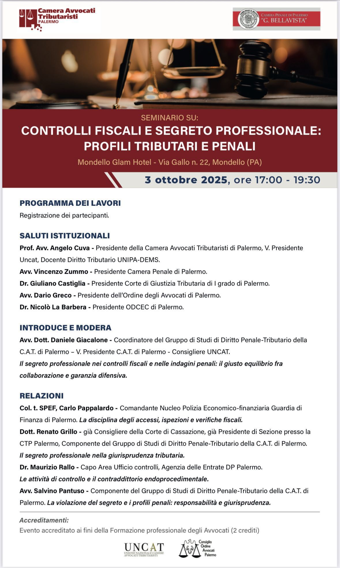 📚 Seminario: Controlli fiscali e segreto professionale – Profili tributari e penali